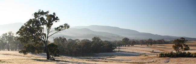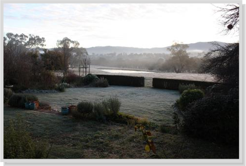 Even though it’s June and midwinter, the landscape is full of colour. In the morning when Wombat and I are out walking, Wombat scuttling after rabbits, me glowing in the cold, it’s blue and silver: the sky duck egg blue, the gums and wattles silvery pewter, the pasture glinting with white frost.